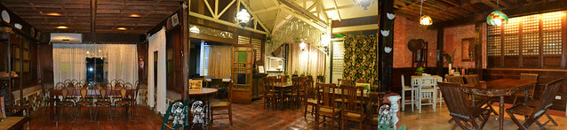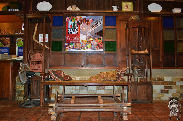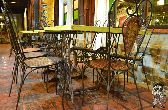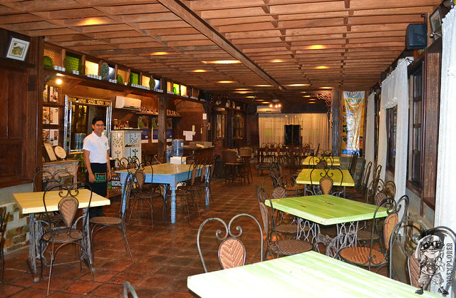 When you enter the vicinity of the place, you’ll notice that it’s just a typical old house in the province. But upon stepping inside the restaurant, you will be transported to a vision of the past with the presence of antique furniture used to adorn the interior. An old version of a bed, serves a waiting area for guests, is located in the balcony before entering the main dining halls. First thing to grasp my eyes were the different colored tables and the very rustic chairs. The whole structure of the restaurant was made up of woods but it is air conditioned inside. Windows manifest the famous Capiz shells and large curtains covering them.