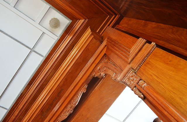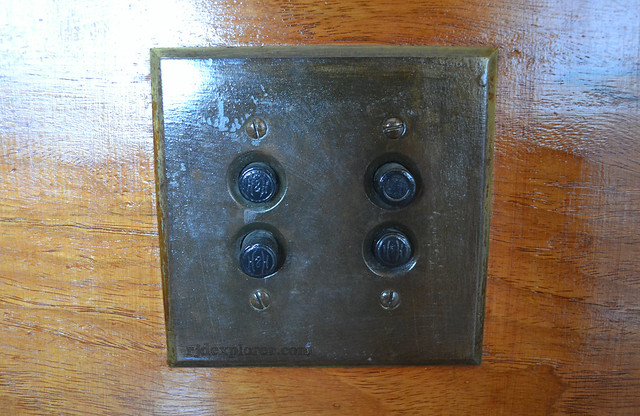 Visitors are required to take off their footwear before entering the house. On my first step on the wooden floor, the gigantic red Narra columns were so obvious. Common among the rooms on the upper floor of the house are the doors that initially seem to be an entry to adjacent rooms, but are actually spacious wall cabinets. Interesting items to check out includes the vintage brass button electric switches, and the very artsy steel windows.