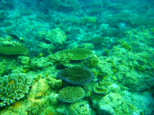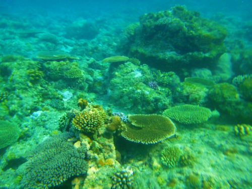We had our first meal on the island. The guys prepared an Adobong Manok and Spicy Shrimp for everyone. After having lunch, we spent an hour or two just sitting under the shade of trees feeling the fresh air from the sea. It was around 3 in the afternoon when the group decided to try snorkeling near the shore. Underwater photos courtesy of Claire of http://iamtravelinglight.com/