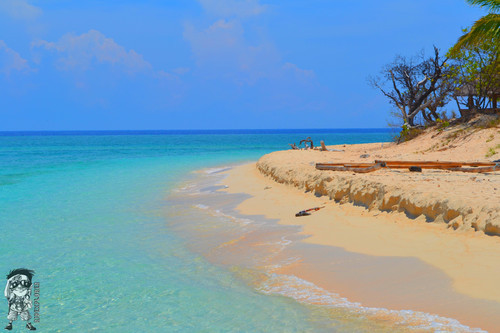 A very pristine, powdery and fine beach welcomed us that replenished our energy. The crystal clear waters of the area enticed me that I was the first one to jump off from the boat. It was high noon but I didn’t consider the scorching heat of the sun to take shots of the sand and the sea.