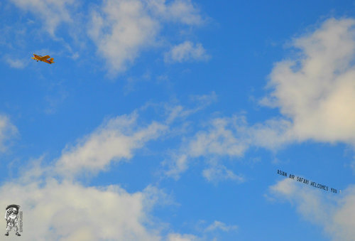 A banner-towing demonstration was also held showing how a banner is lifted from the ground. I thought the banner was already attached to the tail of the plane when it takes off but I was wrong when I found out from the demo that the plane will take off first and then go around the field again picking up the banner suspended between two poles using a hook at the plane’s tail.