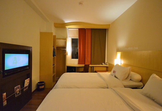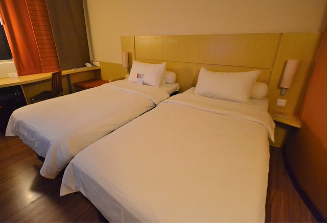 We got a standard two single-bed room, one of the two room types available, another one is a double bed. The room has two twin-sized beds hyped by quality Ibis beddings, a regular pillow and another bolster, a 32″ flat-screen satellite television, and a coffee and tea making facility. The working desk is near the window and business travelers staying in the rooms for some work-related stuff can enjoy high-speed WiFi.