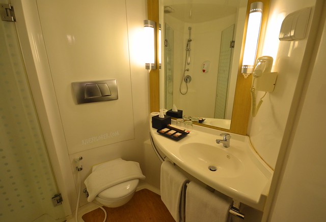 Toilet and shower have the pod concept, though the pod looks like tight, space is ample enough to move around. Hot and cold shower, shampoo and shower gel on wall-mounted dispenser, soap, dental kit, sanitary bag, and shower cap. All these shower amenities can be availed the moment you jump into the pod shower. A bidet and a hairdryer are added conveniences. The hotel is under Accor Hotels and promotes environmental causes like planting a tree for the hotel’s energy savings. One way to help is to reuse your bath towels by simply hanging it on the section where a sign was placed.