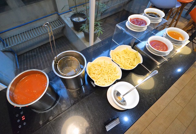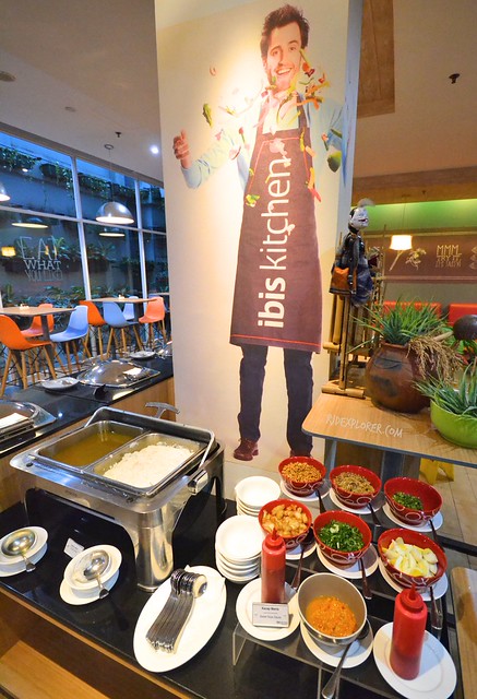 Ibis Kitchen has three major sections, excluding the coffee vending machine for a dose of black coffee or cappuccino. Nearest from the entrance offers the local staples like fried rice and meat. On one side of the middle spread extends the local section with a bowl of bubur ayam, or chicken congee. Other sides have sautéed mixed sausages, fried potato wedges, boiled eggs, and fruits. Last segment has the do-it-yourself pasta, cereal, juice dispensers, bread and a dozen of spreads, and pancakes and pastries.