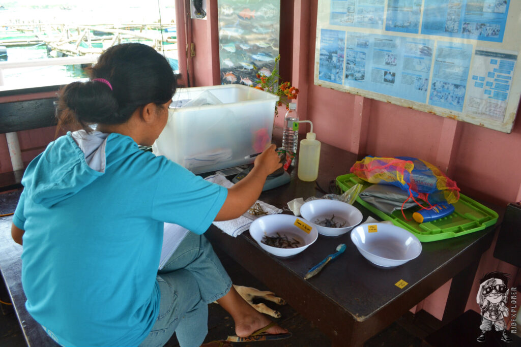 We also tried feeding large milkfish wherein the fishes sucked the pellets in our hands. During our visit, some of the staffs were busy collecting data from the seaweeds for research purposes. They were accurately measuring the weight and length of each sea weed. If you remember, Guimaras experienced the worst oil spill on August 2006 when the oil tanker M/T Solar 1 sank during a storm roughly 20 kilometers off the southern coast of Guimaras. The worst effect of what happened can be seen on a lobster which was coated with oil and turned into black preserved on a frame in the floating station.