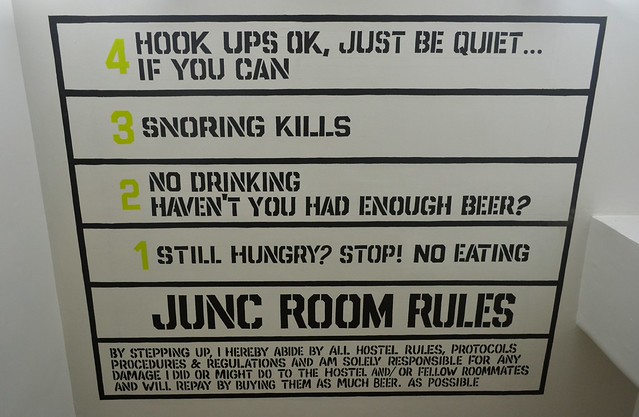 If hotels have dim hallways to compensate classiness, Junction Hostel made its hallways bright and quirky with graphics, and travel quotes. Using the stairs, you need to internalize the 14 Junc Room rules you should follow when you proceed to the upper floors of the hostel.