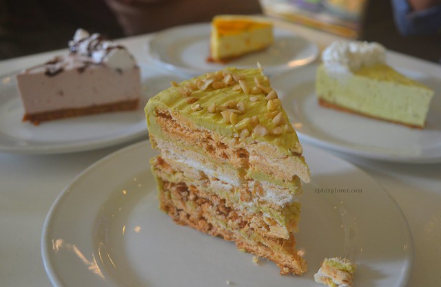 We got slices of Avocado Sansrival, Avocado Cheesecake, Mango Cheesecake, and Blueberry Cheesecake, all Php180 a slice. You might consider it pricey but the hefty sizes compensate the amount you’re paying and you can also appreciate the generosity of fruit bits and the quality of cream cheese used. The crust of the cheesecakes is damped unlike others that are parched and firm.