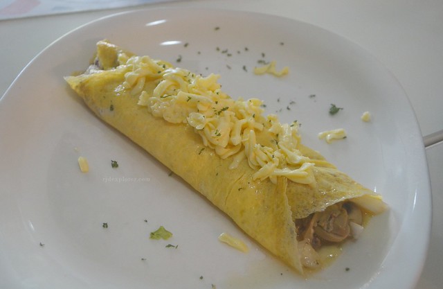 Platters cost Php300 but it might be heavy for the first meal of the day so we chose to get some rice meals: Tapa (Php200), Hungarian Sausage (Php180), Bacon, Mushroom, and Cheese Omelet (Php170), Tapa Breakfast Burrito (Php250), Strawberry, and Chocolate Milkshakes (Php140), and Café Mocha (Php80) for beverage.