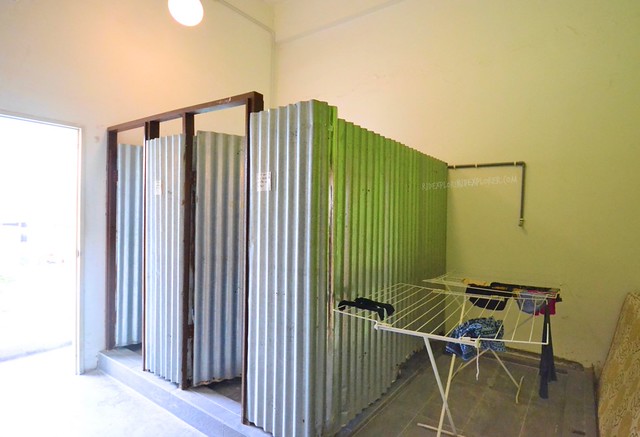 The two connecting dorm rooms share one toilet and shower. There are actually two cubicles but the other one was closed during my stay. There are several restaurants near the hotel serving variants of nasi and curry viands.