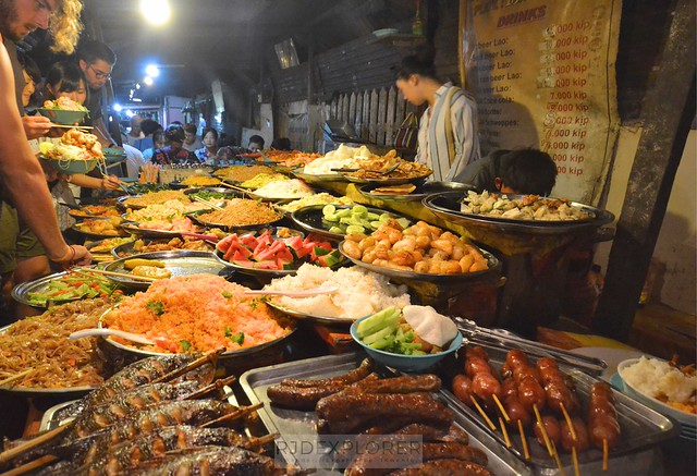 If you’ve been to Luang Prabang and visited the night market, you might recall a narrow alley beside a famous rooftop café. The lane feels even tighter because of the food vendors lining both sides. Some of them offer a vegetarian buffet for just LAK 15,000 (around USD 2). For that price, you can fill your bowl with noodles, rice, spring rolls, pasta, sautéed vegetables, fruits, and even an egg. Once you’ve piled on your choices, you join the queue where vendors reheat your food and add seasoning and chili to taste.