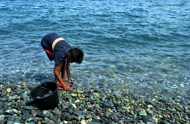 During my visit, kids were also helping their parents in pebble-picking while dipping in the clear water of the beach. A kid who was busy filling his bucket said that the money he will get from the sales of his pebbles will be used for his schooling this coming June.
