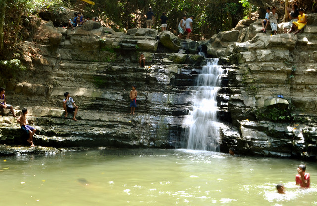The falls is not that high but has a spacious basin that serves as a swimming area for the visitors. The rock, where the water cascades, is really astounding with its surface having some levels that add an effect on the gush of the water.