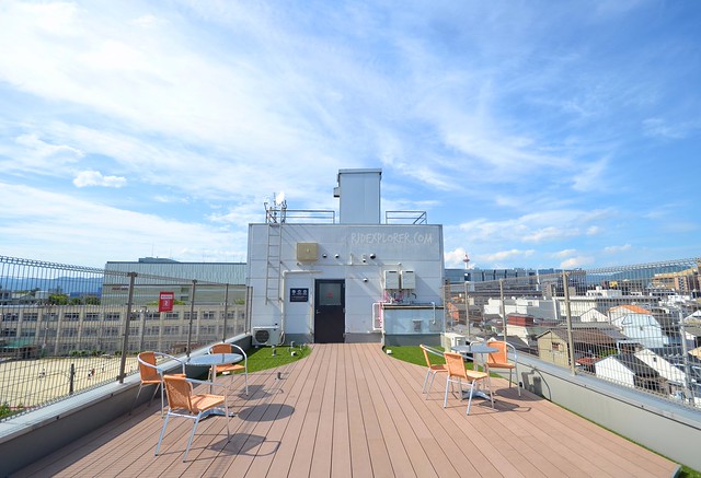 Floors are labeled on one side of the elevator with the ground floor the bar, cafe, and common area, second and third for mixed dormitories, next one for female dormitory, and the topmost floor for laundry area and roof deck. Yes, Mosaic Hostel Kyoto has a roof-deck that suggests stunning views of the city day or night. However, with regard to the regulations of the city, the management only allows maximum of 13 people at the same time on the deck.
