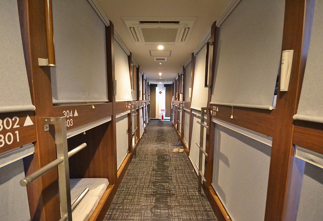With all the hostels I’ve stayed so far, the floor layout of Mosaic Hostel Kyoto is one of the best. When you arrive on your floor, first area is the toilet, shower, and sink. Accessing the door using your keycard will allow you entry to the second compartment housing all the lockers offering ample space for your luggage or backpack. Keys are provided for the lockers so no need to bring one. Through a wooden sliding door, are the capsule beds.