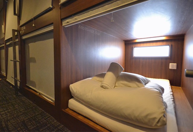 In terms of bedroom, the capsule bed provides more space than usual. I think another person of same built can still comfortably fit inside the bunk. However, only a person is allowed per capsule. Soft sheets, a normal pillow, and a free towel. Bed facilities include the usual power outlets and light source. Opening of the capsule is covered with a single-pull blind.