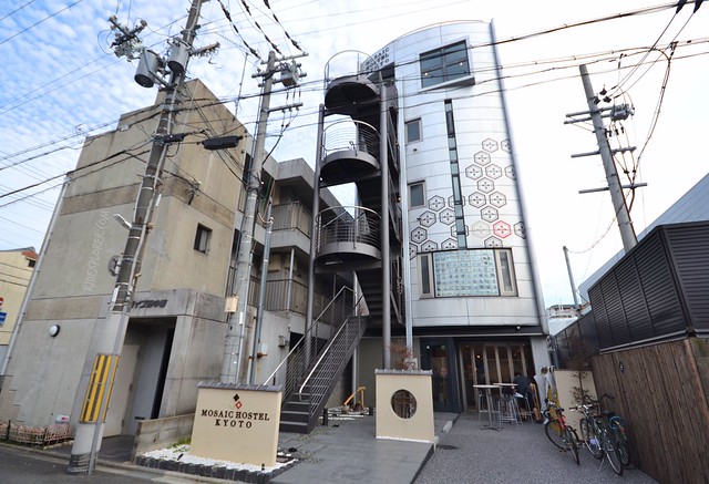 Bus 205 from Kyoto Station brought me to Kujo Shakomae, which is a just a minute walk to Mosaic Hostel Kyoto. The 5-story building is very visible from the highway and there’s no other way you can miss the hostel. Frontage is not that wide but the building extends on the other side.