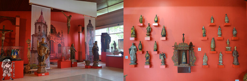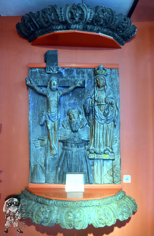 Since Iloilo has magnificent baroque churches and the people are known to have a strong faith, the section of the museum also displays different sizes of religious figures.The image below is a late 18th-century high relief carving in hardwood originally polychromed showing traces of gesso. The relief depicting the conversion of San Agustin, a heretic, to Christianity. The scene shows the penitent convert before the crucified Christ with Sta. Monica, shown with a bare breast probably recalling how she nourished her son with her milk.