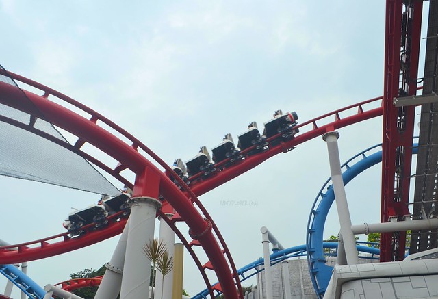 The other coaster, on red track, is the traditionally seated roller coaster. For me, the Human coaster provided a more exhilarating ride compared to the Cylon. This was explained by more g-force applied on the Human track. Either of the two, expect a hair-raising experience and a wobbly feeling after the ride.