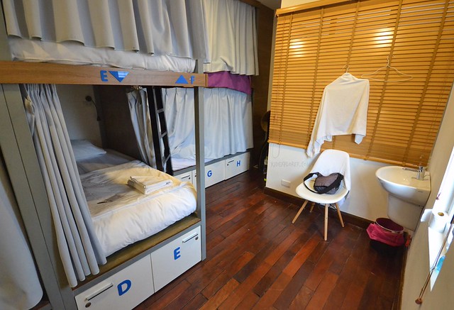 There’s a sink in the room so no more need to go to the shared bathroom for simple hand washing. I was not sure if the air-conditioning unit is a bit slow in cooling the room or the bed curtains are just too thick. Nonetheless, I had astounding sleep during my stay. Thanks to the soft mattress covered with clean sheets. Each bunk has its own light source and a two-socket power source.