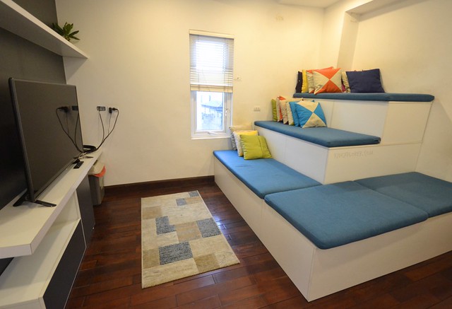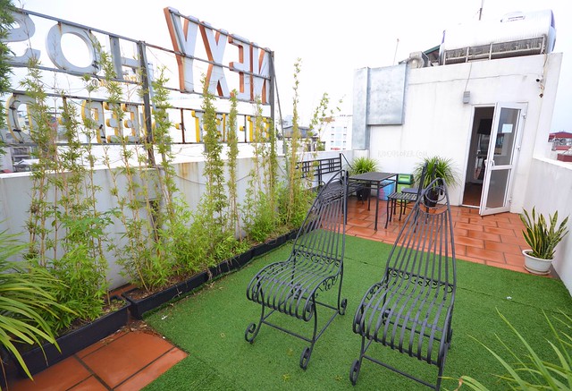 Another one is my favorite spot, the TV Room. A three-tiered sofa, where one could lie down and take a nap or watch a travel show on the television, is the main attraction. Lively colors wrapped the throw pillows. The other half of the room is the library and computer area. Borrow some books about traveling in Vietnam or some that narrate travelogues of the authors. If you need some information online or need to book tickets, you can use the computers for free. Lastly is the roof deck and balconies covered with artificial grasses.