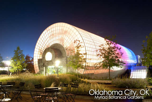 Tucked in the middle of downtown Oklahoma is Myriad Botanical Gardens — aptly named for the myriad of facilities in such a tiny area. A great option for recreation, the garden has a tropical conservatory, pond, indoor events center, amphitheater, playgrounds, and seasonal recreation areas like a skating rink and splash pad. Architecture in the park is impressive, especially the cylindrical building. Paying the $8 admission fee will provide you a guide map of the garden.