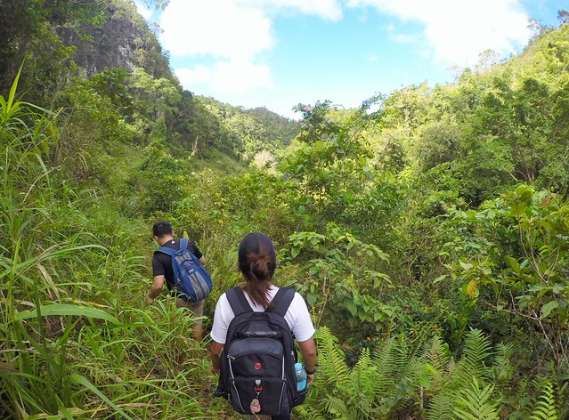 The trek continued on some steep courses, a path with the view of a ravine blocked with ferns, a basketball court, corn fields, goat-infested trail, under towering coconut trees, and again on a village where we had a break and bought bottles of Coke to replenish our sugar. After that, the most grueling part of the trek under the scorching heat of the sun at one in the afternoon plus the heat coming from the paved road almost pinned me down.