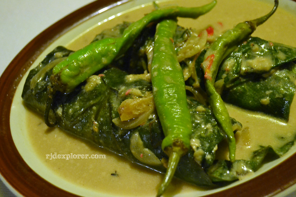 Aside from the platter and starter, they also served a hefty bowl of bulalo with “humahum” or baby ferns as ingredient. I was intrigued by the fern since it looks like the plant that grows in our garden. I was thrilled when I found out that it’s the same plant. If I’m going to suggest a dish, it would be the Stuffed Gabi Roll. It is comparable to Bicolano’s laing with the fish wrapped with gabi leaves and perfectly simmered in young coconut milk savored with shrimp paste (alamang).