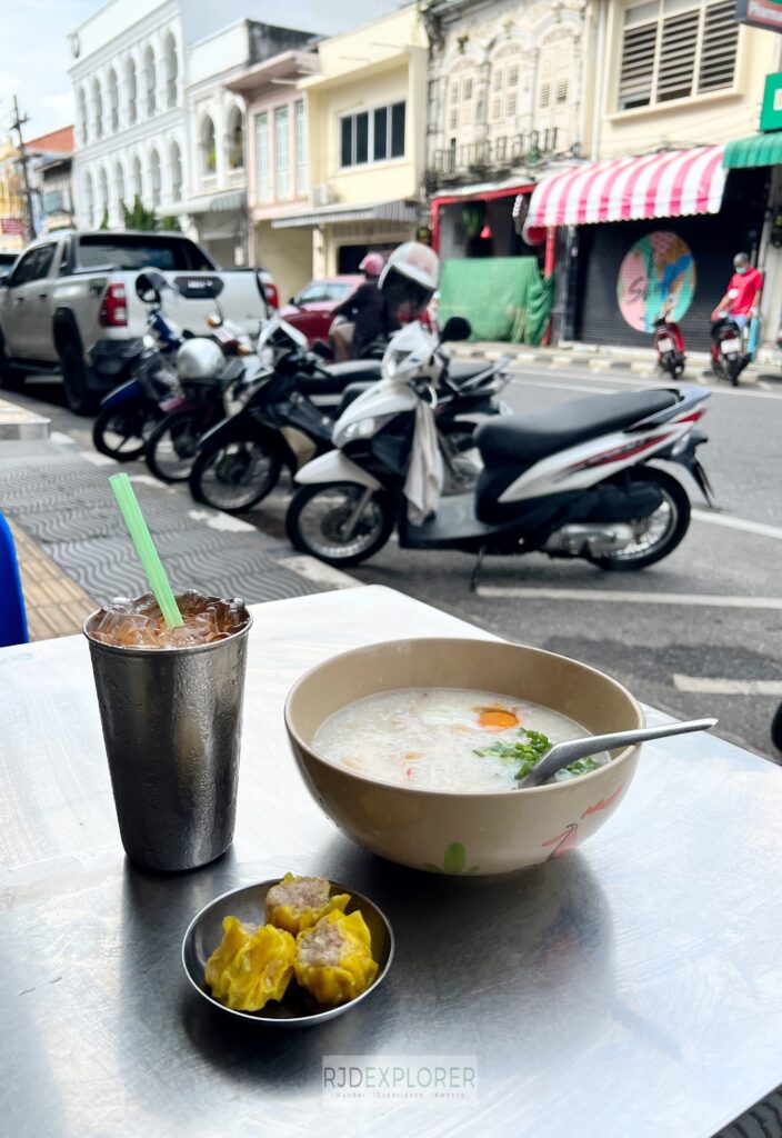 Another day led me to Khao Tom Moo, where tables filled with locals enjoying their meals. I ordered Khom Toom, paired with shumai and Thai iced tea. The rice soup had a clear, aromatic broth that felt comforting. The shumai added a soft, savory contrast. This spot was not flashy, but locals returned daily. Eating here allowed me to step into their routine, sharing a quiet moment in the town’s life.
