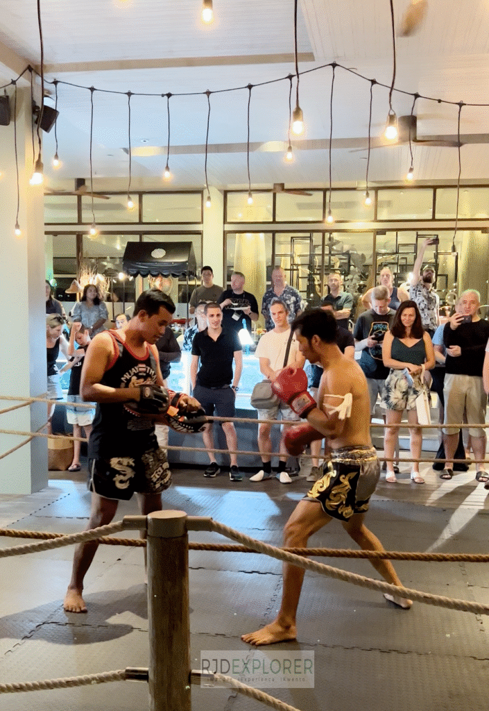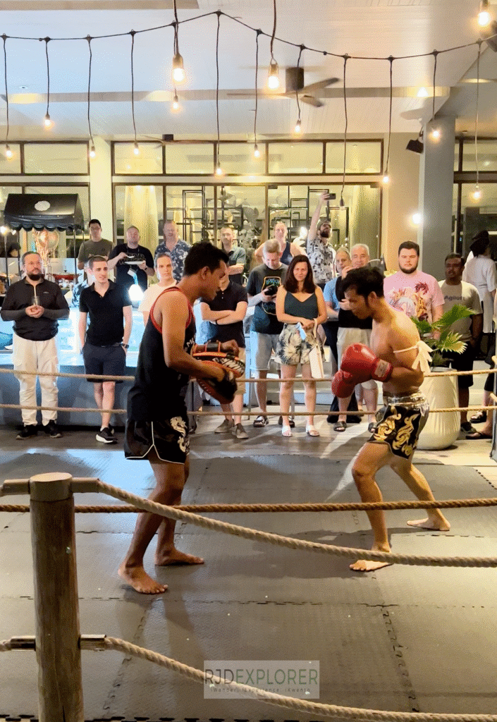 One afternoon, we stumbled upon a Thai boxing demonstration happening inside the resort. It surprised us. It held our attention immediately. Sharp footwork and fluid strikes filled the space. The performance felt athletic and traditional at the same time. Our team paused from screens and schedules. We watched with full presence. It added cultural depth to our stay. It reminded us that Thai culture thrives even within the polished walls of a resort.