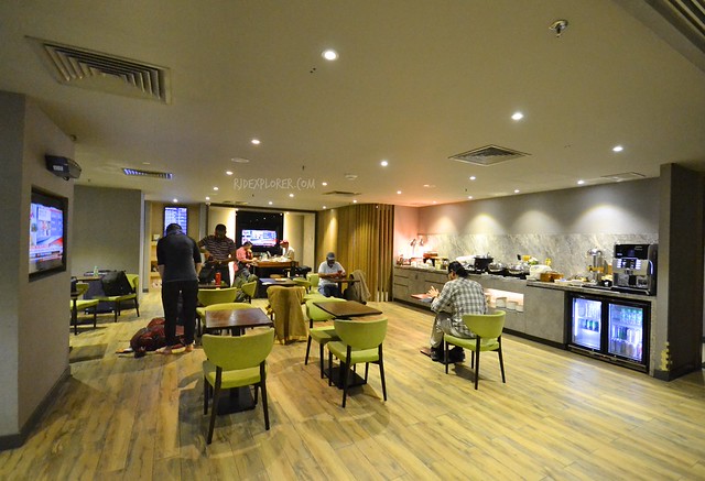 There are 2 areas of the lounge: near the buffet station with comfy seats and the other having seats with curved and upholstered lumbar support. Based on my observation and profiling, business travelers stay on the lounge near the exit because of the flight monitoring screen, some power plugs, and table and seats more appropriate for catching up with work. While backpackers, with bulky and tall bags, laze on the other side where they could catch some naps. Guests availing hours on the common lounge also have access to the lounge’s shower facilities. There are also desktop computers near the front-desk open for guests who need to browse the internet.