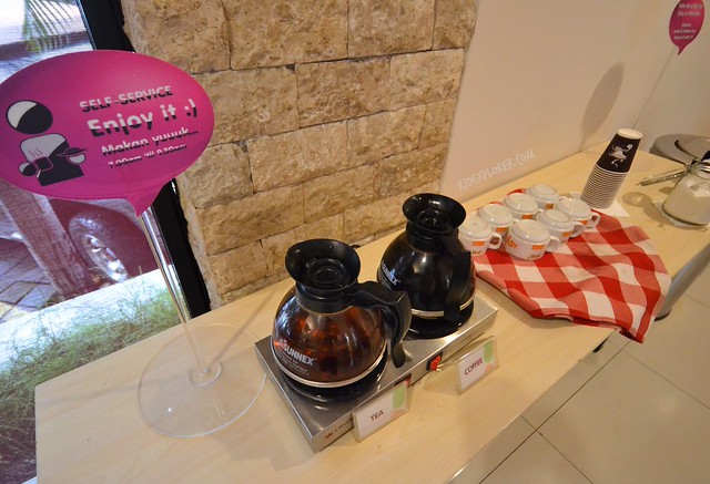 Breakfast, they called as morning bites, is included in the room rates. We were surprised to know that meals are served similar to in-flight meals provided by airlines. We found out later that the concessionaire of Garuda Indonesia is also in-charged for POP Hotels breakfast. The are six breakfast options are cheese omelet with chicken sausage, nasi goreng ayam kecap, chicken sandwich, braised tofu, seafood fried-egg noodle, grilled chicken with potatoes. Every item, served from 7AM to 9:30AM, exceeded our tiny presumptions.