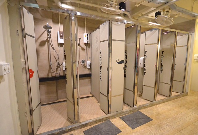 I wasn’t able to check if every floor has a common shower but on our floor, there are six cubicles; three for toilet and others for shower. There’s also a separate corner for male urinals. Hot and cold shower available in hand-held and overhead spouts while shampoo and shower gel are available. You can have a fresh towel for THB200 deposit.