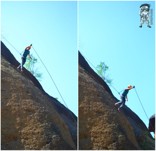 Stations 3 and 4 are being connected by the 3rd zip line which is also 250 feet in length but having a moderate speed than the second one. Another first time I had is the Australian run down. It is the same with the rappelling only that you will descend facing the ground. Unlike their rappelling which is done on a board 90 degree with the ground, PUGAD’s Australian run down is being done on an inclined rock. It was the first thing I’m looking forward to trying in visiting the place and it was really an amazing attempt.
