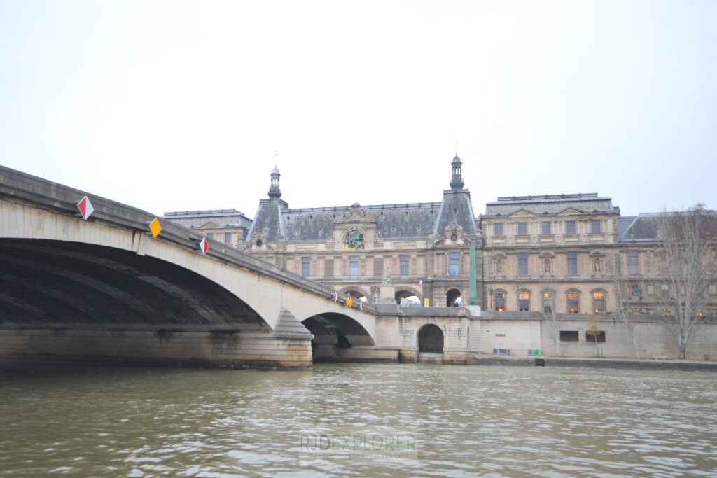 We boarded the boat in the early afternoon, joining a diverse group of locals and fellow travelers who, like us, sought a moment of respite from the bustling streets of Paris. The cruise began with a gentle and graceful glide along the Seine, the boat moving effortlessly through the calm waters. We made our way to the open-air deck, basking in the mild winter weather, appreciating the tranquility that enveloped us.