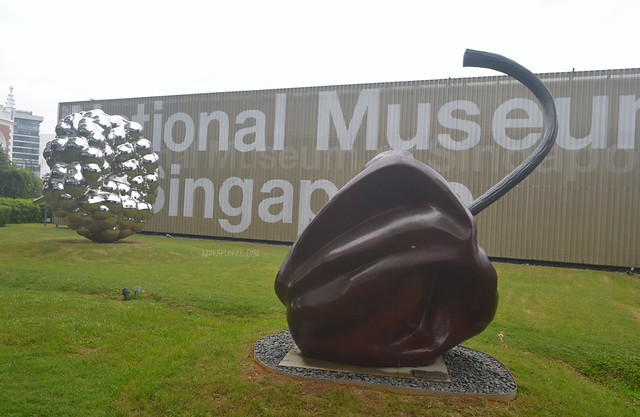 Larger than life sculptures at the back of the National Museum of Singapore are hard to miss when you exit from Fort Canning Park. The two sculptures are the largest red pepper in Singapore, Pedas-pedas by Kumari Nahappan and another one made of stainless steel and resembles a blossoming flower by Yeo Chee Kiong.