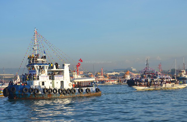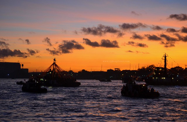 Sun started to rise and a spectacle of colors slowly illuminated the horizon while our boat was on its way to join the parade. With my work schedule, it was again one of the rare times for me to witness a great sunrise and considered it a blessing from the Child Jesus. Around 6:30AM when a throng of tumultuous boats playing different chants and drum beats moved along the parade route.