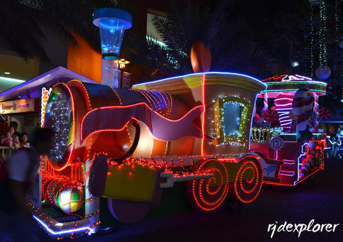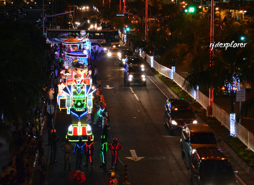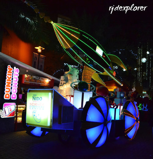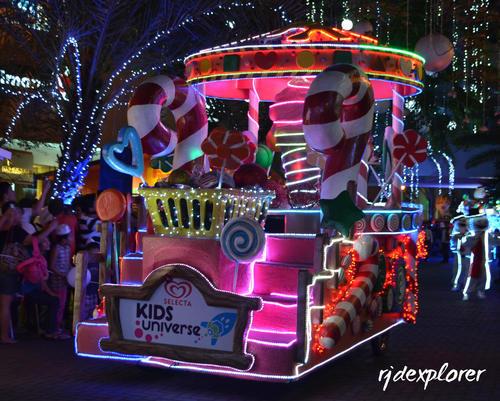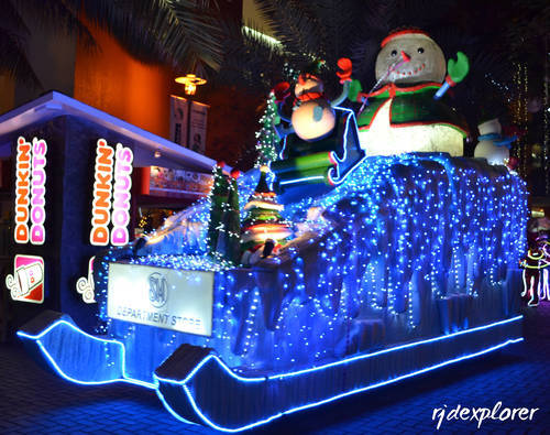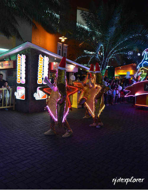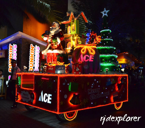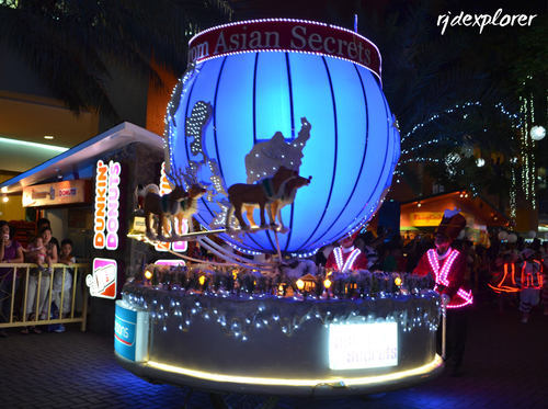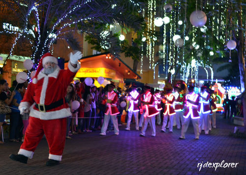 The parade was expected to start at 6 o’clock with all the kids and young at hearts like me patiently waiting at the sides of the parade’s route. While waiting, you can still find time to buy Christmas gifts for your traveler friends. Different stores were also distributing balloons and headdresses for the kids. The parade started around 7 o’clock Santa Claus being followed by the Marching Band.