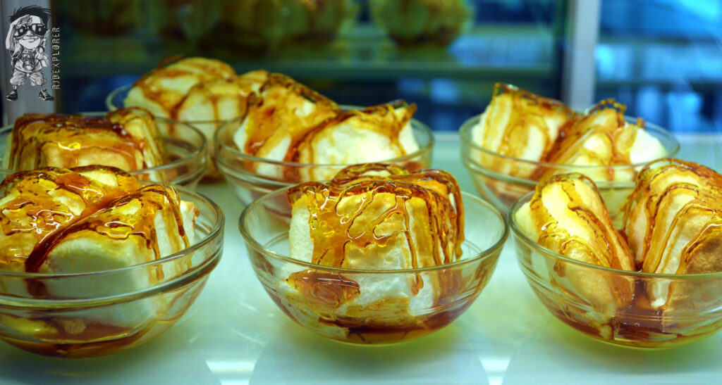 Their inviting cakes were inside the glass chiller waiting to be picked. They have a lot of flavors to choose from, more than two dozen I think. But the first thing that captured my eyes was the Floating Island, a Brazo de Mercedes topped with melted caramel sheet that made it look like a floating island. They have all kinds of cakes that come to your mind!