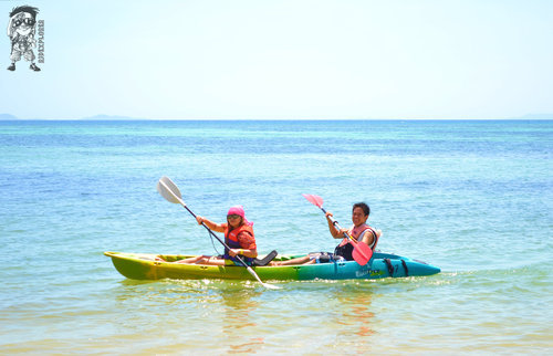 Staying under the trees feeling the sea breeze made us fall asleep for about an hour. I went back to Calatagan market before lunch picking up some grilled chicken and drinks for lunch. After our lunch, we spent another time taking a nap under the shade of trees, alternating on the hammock. I and Ate VI decided to enjoy the heat of the sun by trying out the Kayak. It was both our first time to try kayaking and we were so proud we didn’t fall in the water.