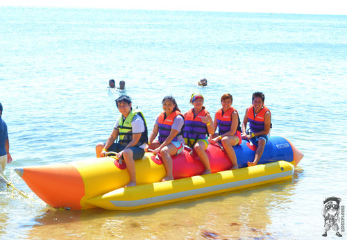 We found out that a banana boat ride is being offered at the nearby resort. After asking for the rate, we unanimously decided to try it. Their package is Php 1500 for 15 minutes for 5 persons. My first banana boat ride was epic with the crew dropping us all during the last lap of the ride. Another activity that can be done in the area is beach volleyball. However, due to the intense heat and super hot sand, we didn’t push through with the game.