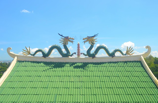 Climbing the stairs at the right wing of the main worship area will again lead you to a three-tiered pagoda. Another pagoda has a wishing well that lets visitors throw coins before making a wish. A larger dragon adorns the grass-carpeted garden on a slope. The pagoda on the background makes it a nice spot for some photo ops. On a bright day, the colorful pagodas perfectly blend with the blue sky.