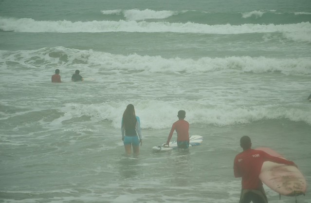 The lady in-charged obliged us all to sign for the waivers and at the same time collecting the fees for the one hour board rental with surfing lesson. It started to drizzle when the friendly surf guides gave us a crash course on surfing.