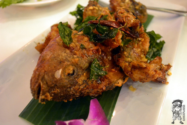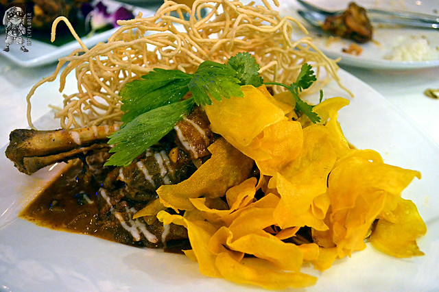 It was then followed by the Lamb Shank Massaman, Siamese Pork Ribs, Chicken Basil and Crispy Tilapia. I was puzzled at first with the Lamb Shank Massaman since it is under the curry section. The shank was delicately cooked for 8 hours and served with crispy noodles and sweet potato chips and shallots. I was expecting it to be spicy because of the color of the sauce but I was wrong. The meat was so tender but the taste was a bit sour.