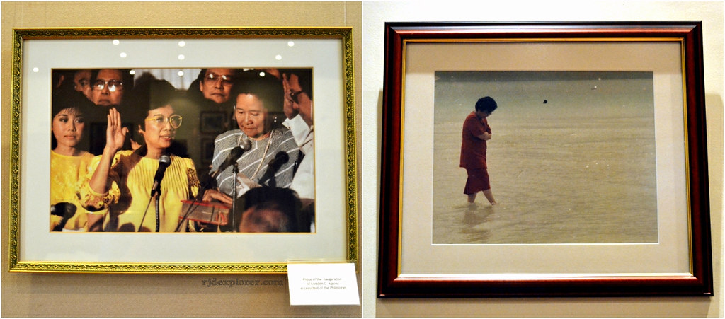 For the post Martial Law era section, you can find a photo showing Cory wading on the shores of Boracay when the island wasn’t developed yet. Other things to check out are the first set of printed 500-peso bill having Ninoy on it on a frame and some paintings of Cory mainly containing flowers. Located near the main hall are the tile mosaics of the couple.