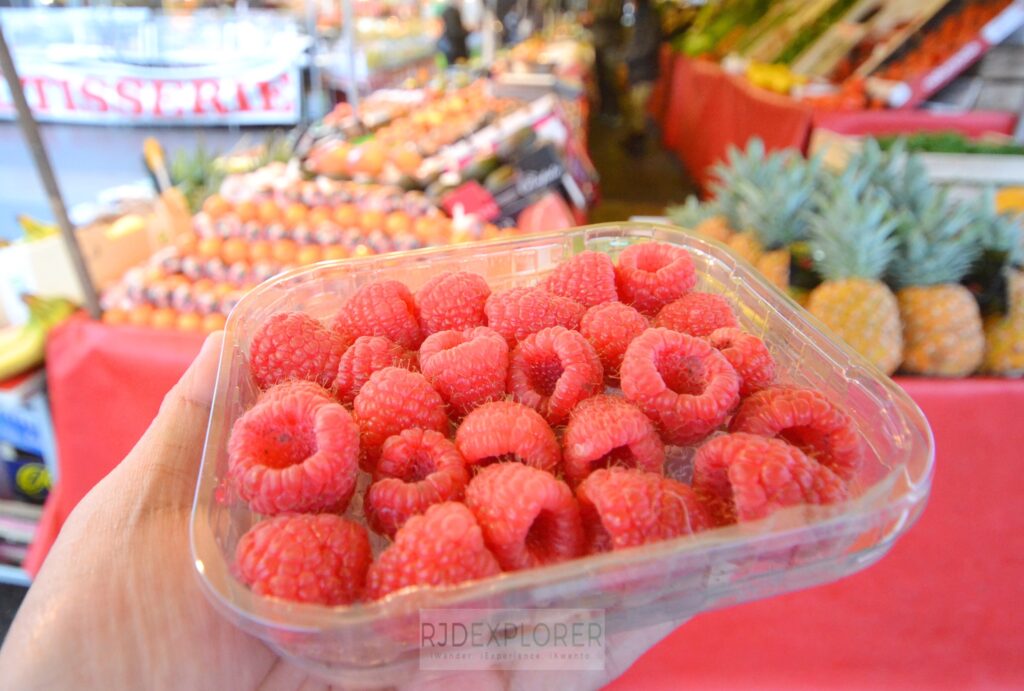 As I meandered through the market, my attention had been drawn to a stall piled with raspberries. New to me, fresh raspberries’ deep red hue proved irresistible, prompting me to indulge in a small pack. The vendor, a friendly elderly woman, had greeted me with a warm smile and handed me my purchase.