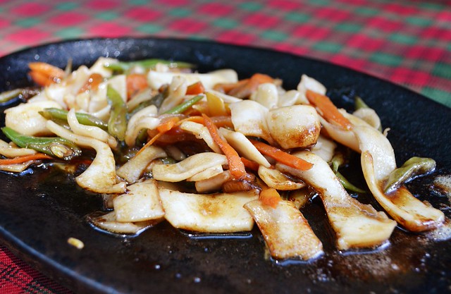 We started to go over their menu and ordered Crispy Pata and Sizzling Squid. They’re known for pasta and pizza but we opted for rice meals for lunch. For quenchers, they offer bottomless iced tea. They have alfresco dining, with tables under the trees, just be careful with falling “debris” though. Aside from that, they have two small cottages that can accommodate two groups each, with 4-6 members.