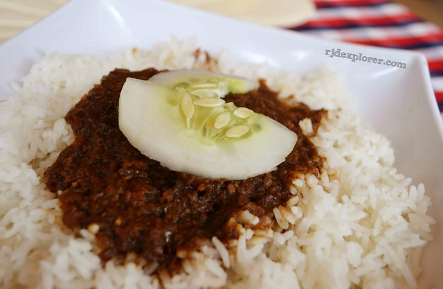 My order Beef Randang (Php 80) and Durian Shake (Php 110) came after a couple of minutes. The beef rendang was served on top of a hefty bowl of rice. The meal was really spicy that a spoonful of rice with just a small amount of the rendang gave me buckets of sweat. It was tasty but I was continuously wiping my sweat off as I munched on the meal. A sip from the creamy durian shake didn’t reduce the piquancy of the meal. Overall, it was a first good feast in Iligan City.