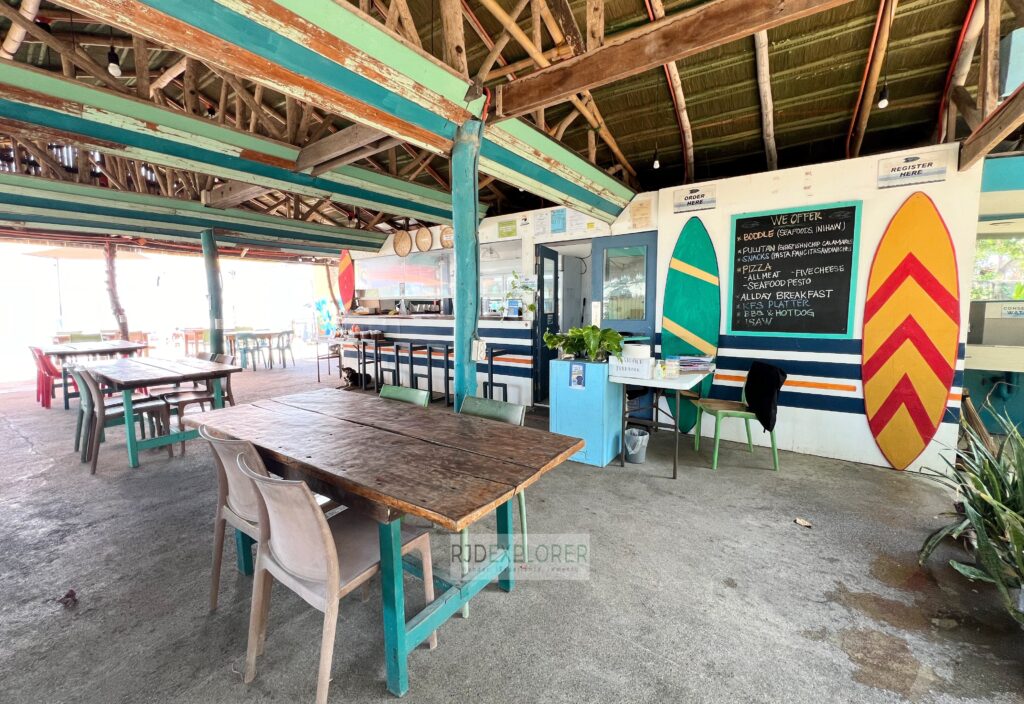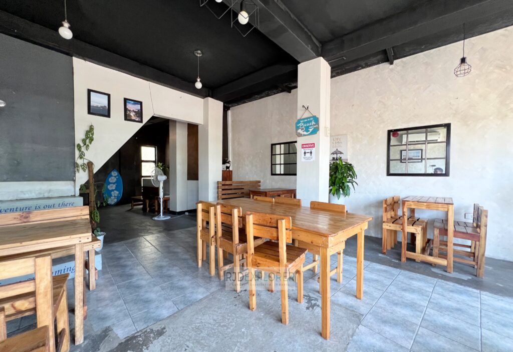 Fat Wave Surf Resort’s in-house restaurant offers an extensive menu covering Western breakfasts, Filipino classics, and casual bar food. Guests can dine indoors or beachfront, making it flexible for any time of day. The relaxed surf-resort atmosphere adds to its easygoing appeal.