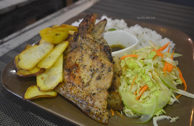 There were no customers except for me so they were avail to serve my order Pesto Pork Steak (Php275) in just 15 minutes. When a crew showed up from the kitchen, I was shocked by the humongous plate of Pesto Pork Steak he delivered on my table. It has two pieces of big pan-grilled chops oozing with their homemade pesto. The meat comes with more than a cup of rice, fried sweet potato chips, and a refreshing salad. It was late to find out that the menu has a disclaimer, “All our dishes are meant for sharing, but good enough for one hungry person.” I was able to chow down everything. (Burgos St., Tacloban City)