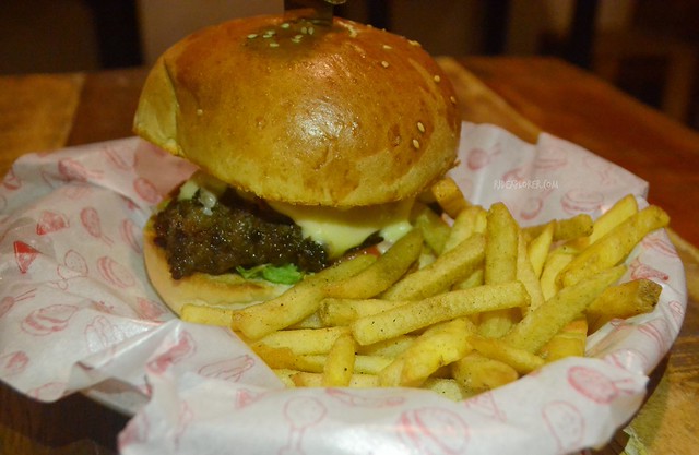 One side of their artsy menu was occupied by the main courses they offer: herbed pork belly, lemon butter pork chop, roasted chicken, chicken wings, herbed grilled chicken, Italian spaghetti, and some beverages. The other side presents their Pop-Up Burgers from classic, cheese, bacon mushroom melt, mushroom caramelized, and Wasabi burger. I even saw veggie, avocado, and mango salsa burger.